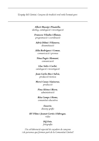L’equip del Càntut. Cançons de tradició oral està format per: