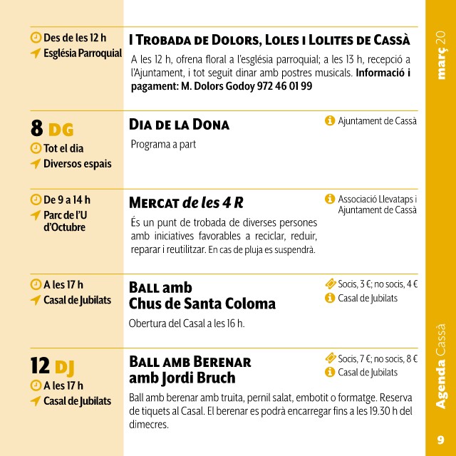 12 dj Ball amb Berenar Socis, 7 €; no socis, 8 € Agenda Cassà
