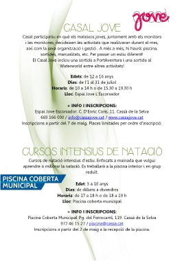 Inscripcions a partir del 2 de maig a la recepció de la piscina.