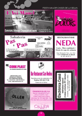 FESTA MAJOR CASSÀ DE LA SELVA RESTAURANT-BAR NEDA Carta - Plats combinats i Menú els caps de setmana Ctra. Girona-St. Feliu, km. 14,5 17244 CASSÀ DE LA SELVA Tel. 972 46 04 12 28