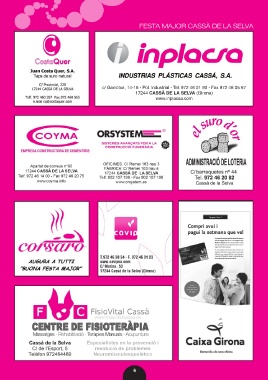 FESTA MAJOR CASSÀ DE LA SELVA c/ Garrotxa, 14-16 - Pol. Industrial - Tel. 972 46 01 90 - Fax 972 46 05 67 17244 CASSÀ DE LA SELVA (Girona) www.inplacsa.com 6
