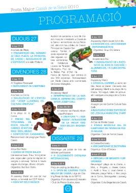 A les 22 h MAJoR de CAssà. Lliga de Càs- Mesures, plaça Petita, c. Mel, plaça final hi haurà xocolatada amb me- Recorregut: c. de les Agudes (alça-