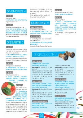questra de Cas- mateix dia i tot seguit, ACtuACió de LA A l’església de Sant Martí oberta fins al 6 de juny Centre Cultural Sala Galà