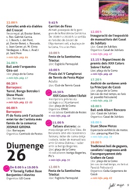 Fi de festa amb l’actuació » més info. pàg. 49 Lloc: Casal de Jubilats