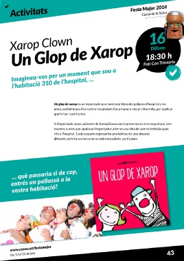 Un glop de xarop és un espectacle que mostra la feina del pallasso d’hospital a les