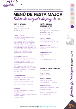 Postres a escollir: Tel. 972 460 412 Jornades Gastronòmiques DE FESTA MAJOR