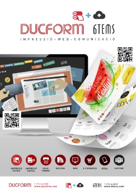 IMPRESSIÓ IMPRESSIÓ GRAN SEO/SEM WEB E-COMMERCE MÒBIL HOSTING OFFSET DIGITAL FORMAT T. 972 46 30 50 T. 972 46 28 07 www.ducform.com www.6tems.com