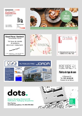 C AF E T ERI A REST A U R AN T www.lantigafabrica.com - C/Via,27-Cassà de la Selva - tlf. 972 10 57 13 - @lantigafabrica Disseny | Branding | Il·lustració 3D Publicacions | Packaging | Senyalèctica Xevi Forroy xevi@dots.graphics | M. 616 078 662