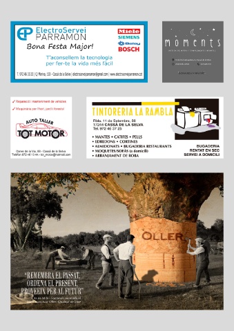 BO TIGA DE MOD A I C OMPLEMENT S INF ANTIL C/ de les barraquetes,16, Cassà de la Selva moments_cassa 972 686 910 BONA FESTA MAJOR! “REMEMBRA EL PASSAT, ORDENA EL PRESENT, PROVEEIX PER AL FUTUR”