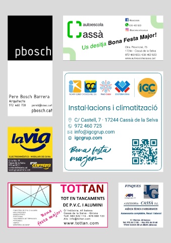 @aecassa autoescola 636 402 823 @autoescolacassa assà Us desitja Bona Festa Major! Ctra. Provincial, 75 17244 - Cassà de la Selva 972 460 933 / 636 402 823 www.autoescolacassa.cat