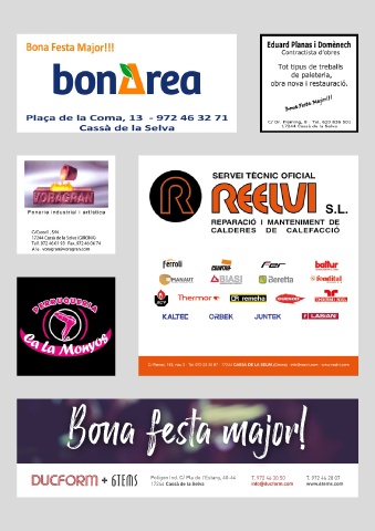 Bona festa major! Polígon Ind. C/ Pla de l'Estany, 40-44 T. 972 46 30 50 T. 972 46 28 07 17244 Cassà de la Selva info@ducform.com www.6tems.com