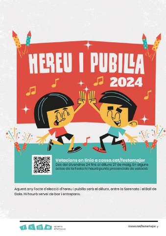 Aquest any l’acte d’elecció d’hereu i pubilla serà el dilluns, entre la Serenata i el Ball de Gala. Hi haurà servei de bar i entrepans. ajcassa cassa.cat/festamajor 7 #FMCassà