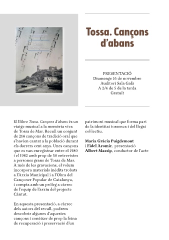 El llibre Tossa. Cançons d’abans és un patrimoni musical que forma part