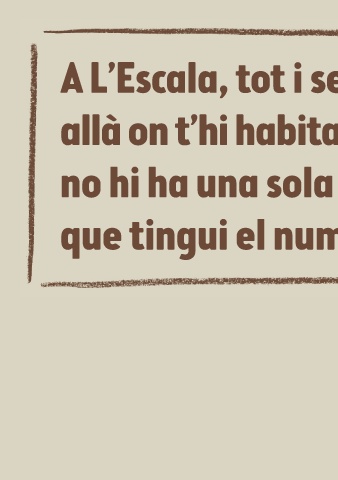 A L’Escala, tot i sent vila, allà on t’hi habita molt de gent, no hi ha una sola casa que tingui el numbro cent.