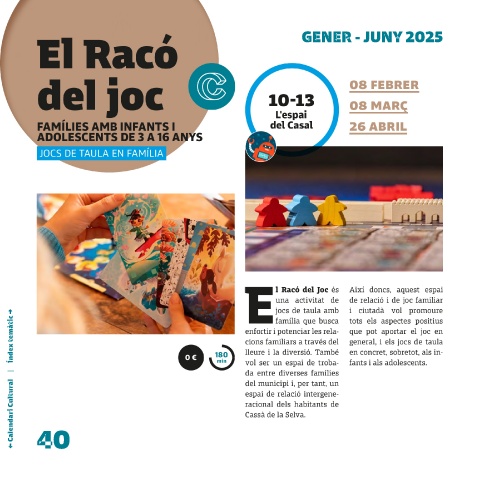 ← Calendari Cultural | Índex temàtic → 40 0 € 180 cions familiars a través del general, i els jocs de taula