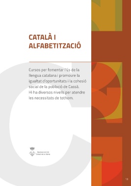 CATALÀ I ALFABETITZACIÓ Cursos per fomentar l’ús de la llengua catalana i promoure la igualtat d’oportunitats i la cohesió social de la població de Cassà. Hi ha diversos nivells per atendre les necessitats de tothom. 13