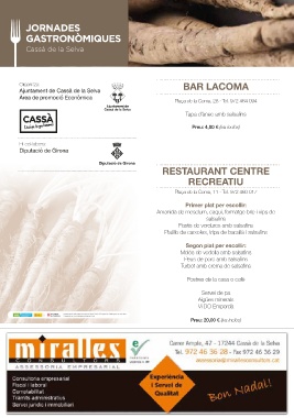 Plaça de la Coma, 28 · Tel. 972 464 094 Carrer Provincial, 226 · Tel. 972 460 027 LA BRASA GRILLADA