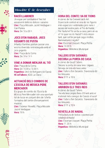 Hora: 10 h REVETLLA DE NADAL Hora: De 17.30 a 18.30 h