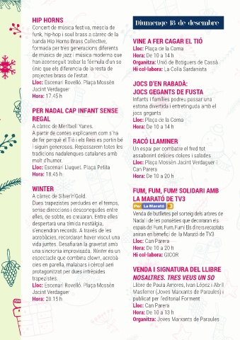 únic que els diferencia de la resta de Hi col·labora: La Colla Sardanista Hora: D’11 a 13 h preguntar-li si en té que parlin del Nadal,