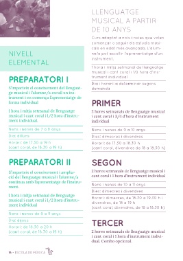 1 hora i mitja setmanal de llenguatge 2 hores setmanals de llenguatge musical o combo (opcional) i 1 hora setmanal d’instrument individual