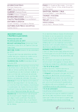 inSCRiPCiOnS Si un alumne falta a classe d’instrument,